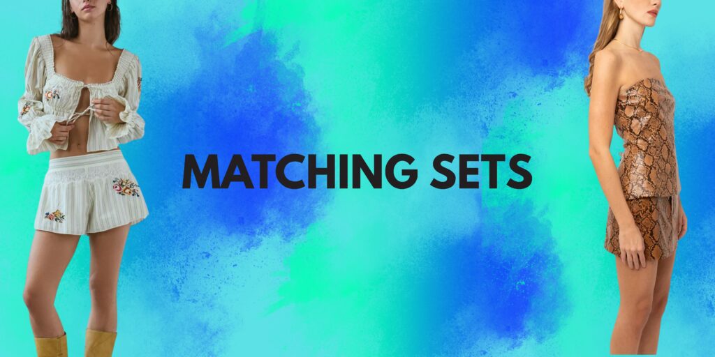 Matching sets are more than just practical, but stylish and great for creating a cohesive going out look.For example, our Amy Lynn Faux Leather Mini Skirt and matching Bandeau Top. This set is sexy and chic, and the snakeskin design will set you apart from the others.